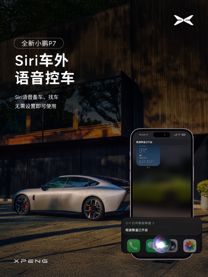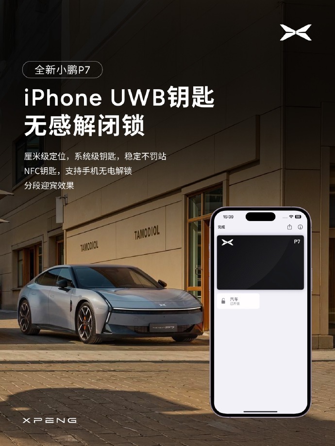 凤凰网科技讯 9月18日,小鹏汽车官方发文称,全新小鹏P7支持苹果用户快捷控车。包括iPhone UWB钥匙无感解闭锁、手机无电解锁、Siri车外语音控车、Apple Watch手表控车等。
