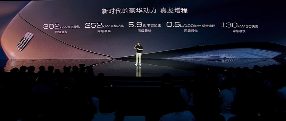 没错,就是由朱一龙代言,首秀时,被高管破音喊出“最强增程豪华轿车”的那款车——