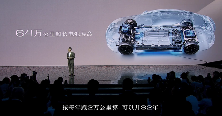 电池寿命可达64万公里——按每年2万公里算,可以开32年。