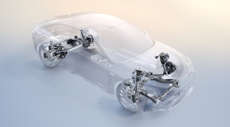 底盘采用前双叉臂、后五连杆悬架结构,后悬是同级唯一采用6球头设计。