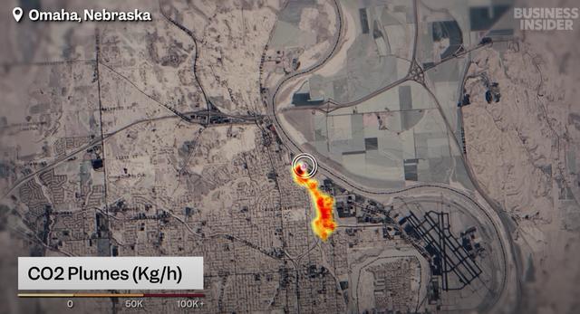 卫星数据显示,北奥马哈发电站在2023年6月的二氧化碳排放量估算为每小时30万千克。