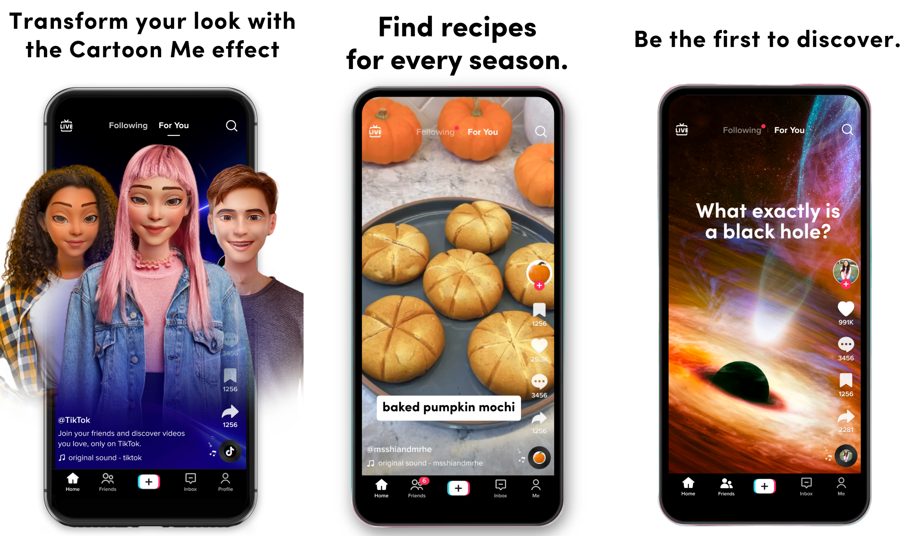它的界面和交互,与我们熟悉的短视频 App 几乎一模一样。采用竖屏信息流,和滑动切换的导航方式的视频源,并由推荐算法为我们提供「为你推荐」的内容。