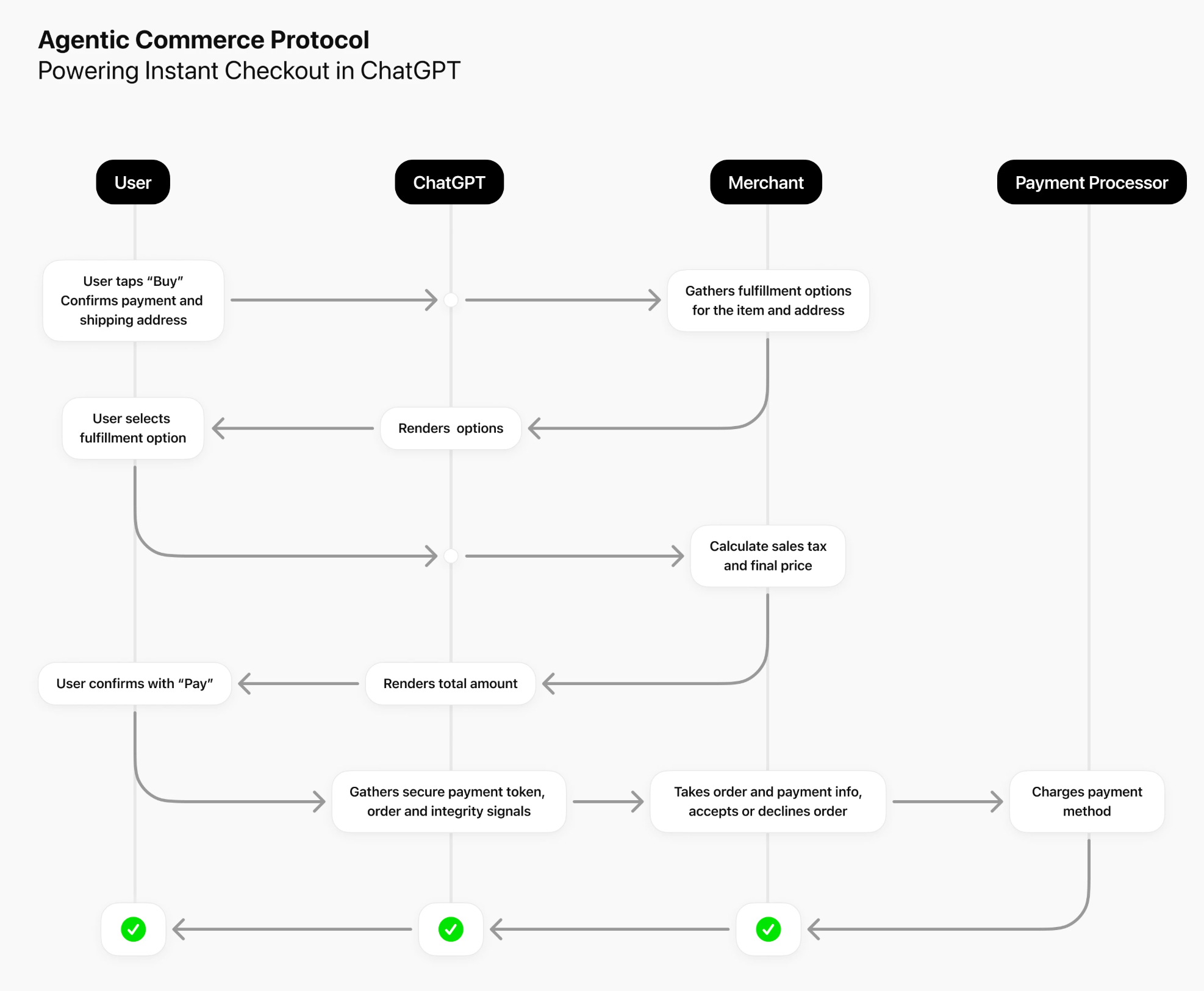 ▲ 这项名为「即时结账」(Instant Checkout)的功能,背后是 OpenAI 与 Stripe 联合开发并开源的「代理商业协议」(Agentic Commerce Protocol)。通过这个协议,OpenAI 正在为 AI 时代的电商制定新的规则。