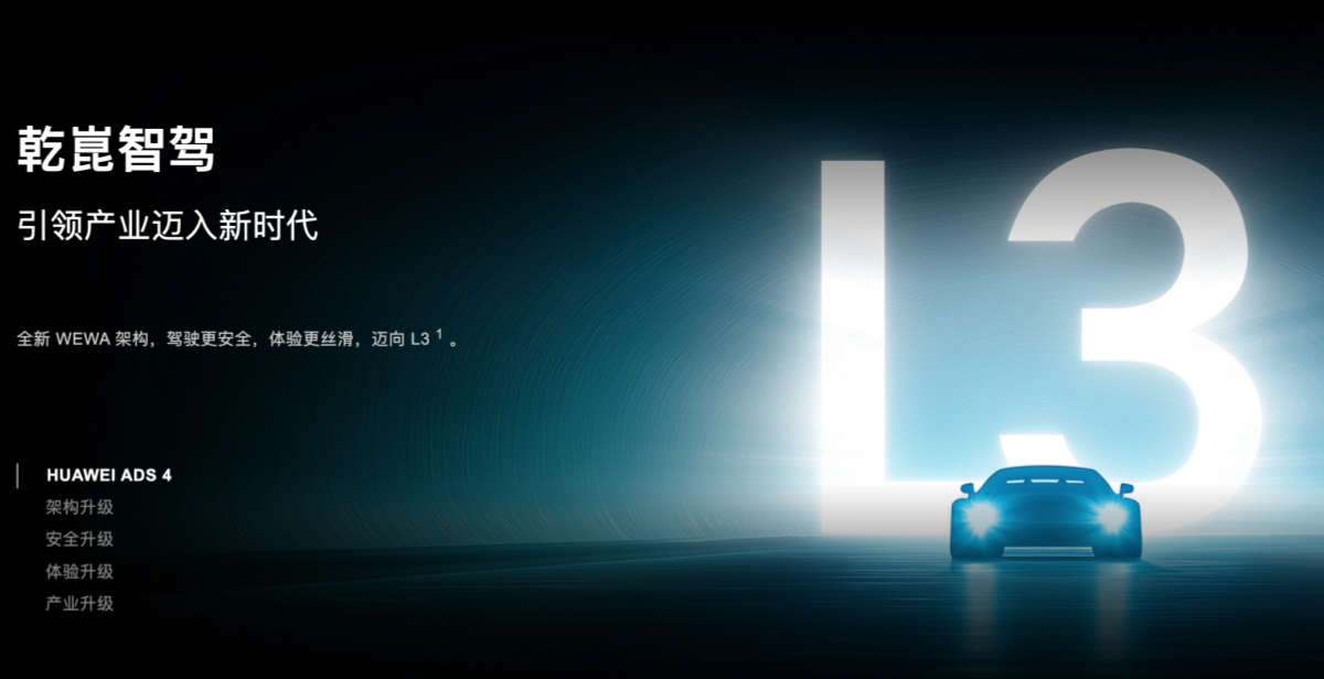 2025 年,华为 ADS 4 系统将首发面向 L3 技术架构的高速商用解决方案,主要针对高速公路场景,具备 L3 试点商用能力,同时启动城市道路 L4 级技术测试。