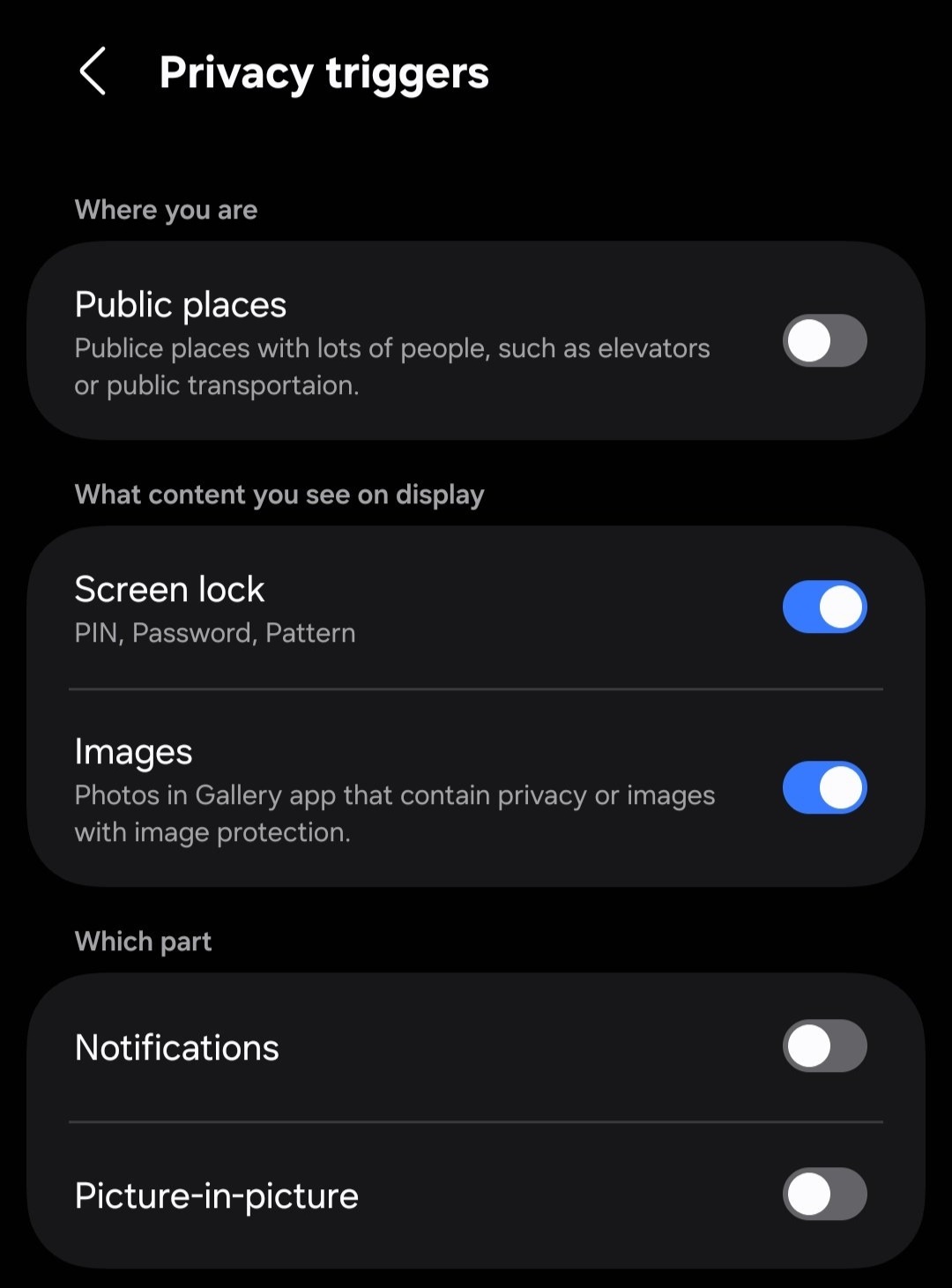 根据消息人士放出的截图,这项功能可以在电梯公交 / 地铁等公共交通工具或其他人流密集公共场合中自动开启,能够阻止其他人偷偷看向使用者的手机屏幕防止窥屏,保护使用者的隐私。