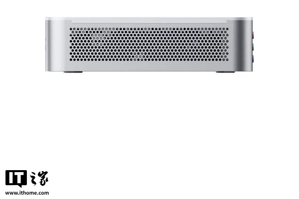 据介绍,这款迷你主机整体采用简洁设计,正面只有一个电源键,没有任何接口,这种设计思路有点像苹果的第一代 Unibody 材质 Mac mini,接口全部位于机身背面,尺寸为 195*193*52 mm,重量 1.12 kg。