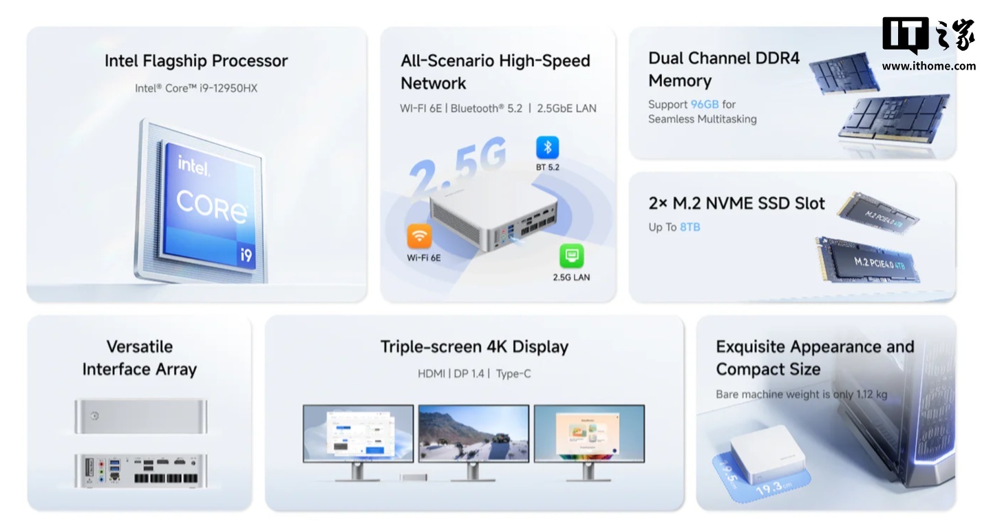 IT之家 10 月 3 日消息,铭凡现已发布 M1-1295 迷你主机,定位中端,搭载英特尔酷睿 i9-12950HX 处理器,IO 接口较为丰富。