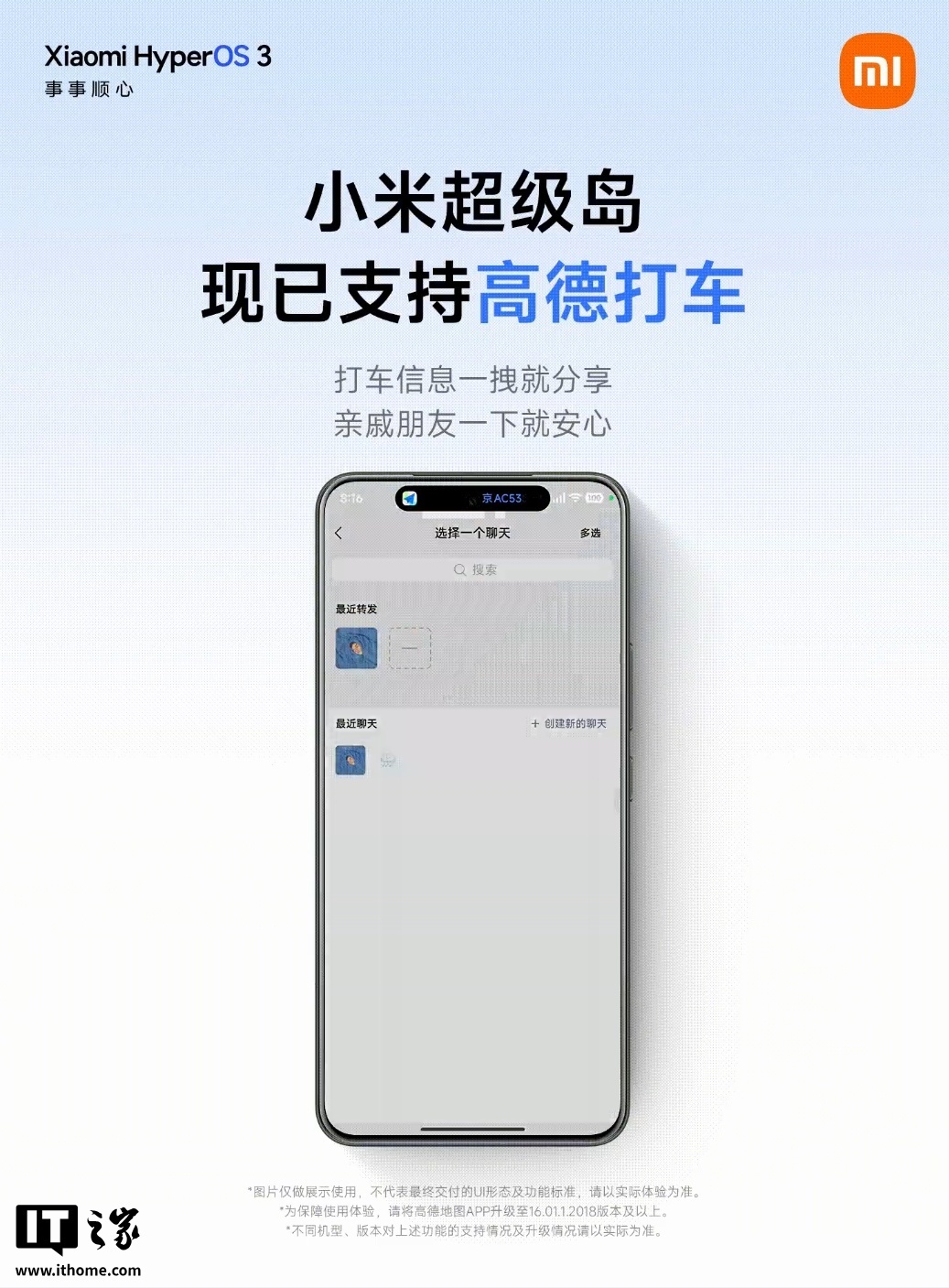 据IT之家昨日报道,小米澎湃 OS“超级岛”功能已支持高德打车,可直接在手机顶部查看打车状态。用户只需要将高德地图 App 升级到 16.01.1.2018 或以上版本即可体验这项功能,叫车后系统会自动在手机顶部摄像头区域显示司机到达时间、车牌号等,点击顶部还可以查看更多详细信息。