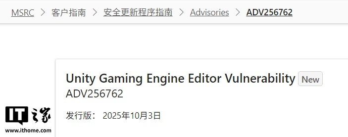 IT之家 10 月 4 日消息,微软安全响应中心于 10 月 3 日发布公告,Unity 宣布了一个安全漏洞(CVE-2025-59489),该漏洞影响使用 Unity 游戏引擎编辑器(版本 2017.1 或更高版本)构建的游戏或应用。