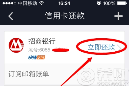 3、添加要还款的信用卡,小编早前已经绑定了,所以只要点击立即还款按钮,就可可以进行还款了。