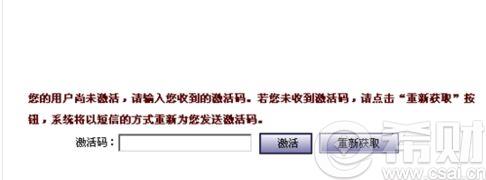 9.第二天手机收到激活码后,登陆账号,系统会提示你激活用户,找到手机上的激活码,激活账户。如图所示: