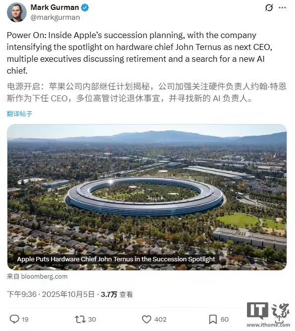 IT之家 10 月 6 日消息,在今天最新一期的 Power On 时事通讯节目中,彭博社记者马克・古尔曼再次探讨了苹果 CEO 接班人的问题。