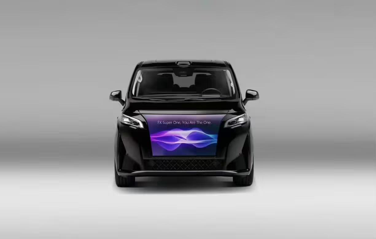 这款概念车有着传统 MPV 的身形,但前脸中网部分并未采用散热格栅设计,而是一整块 LED 显示屏,FF 称之为“Super EAI F.A.C.E.设计”,其中 F.A.C.E 是指 Front AI Communication Ecosystem。