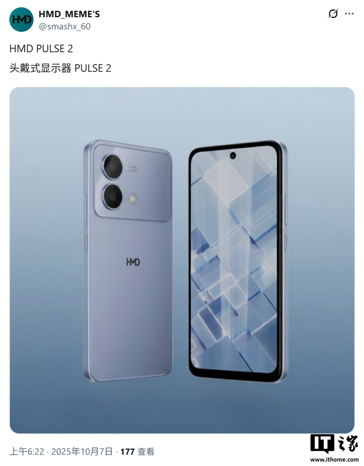IT之家 10 月 7 日消息,消息源 @smashx_60 今天(10 月 7 日)在 X 平台发布推文,曝料称 HMD Global 将推出 HMD Pulse 2、HMD Pulse 2+、HMD Pulse 2 Pro 三款机型,并分享了 HMD Pulse 2 Pro 机型的核心规格参数。