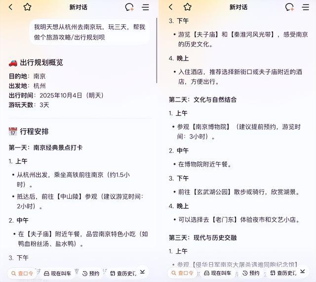 至于它集成的定时叫车、对比出行方案、查询历史行程以及旅游规划等附加功能,则更像是为了丰富菜单而存在的添头,完成度还不高。