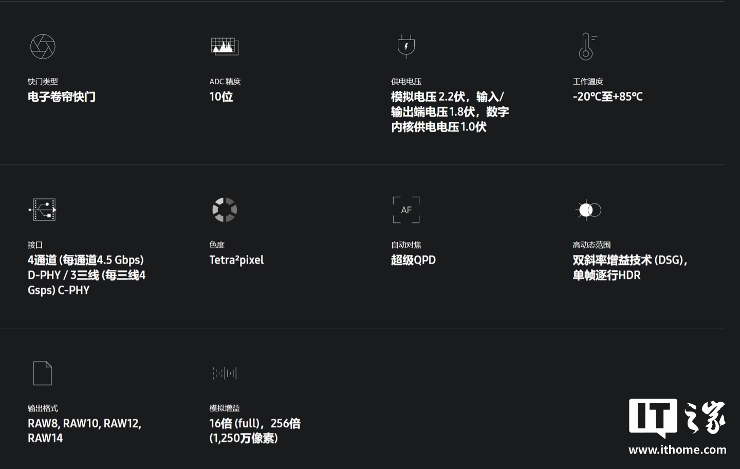 视频方面,该传感器支持录制 8K 30fps、4K 120fps 以及全高清 240fps 的视频,并能输出多种位深的 RAW 格式文件。