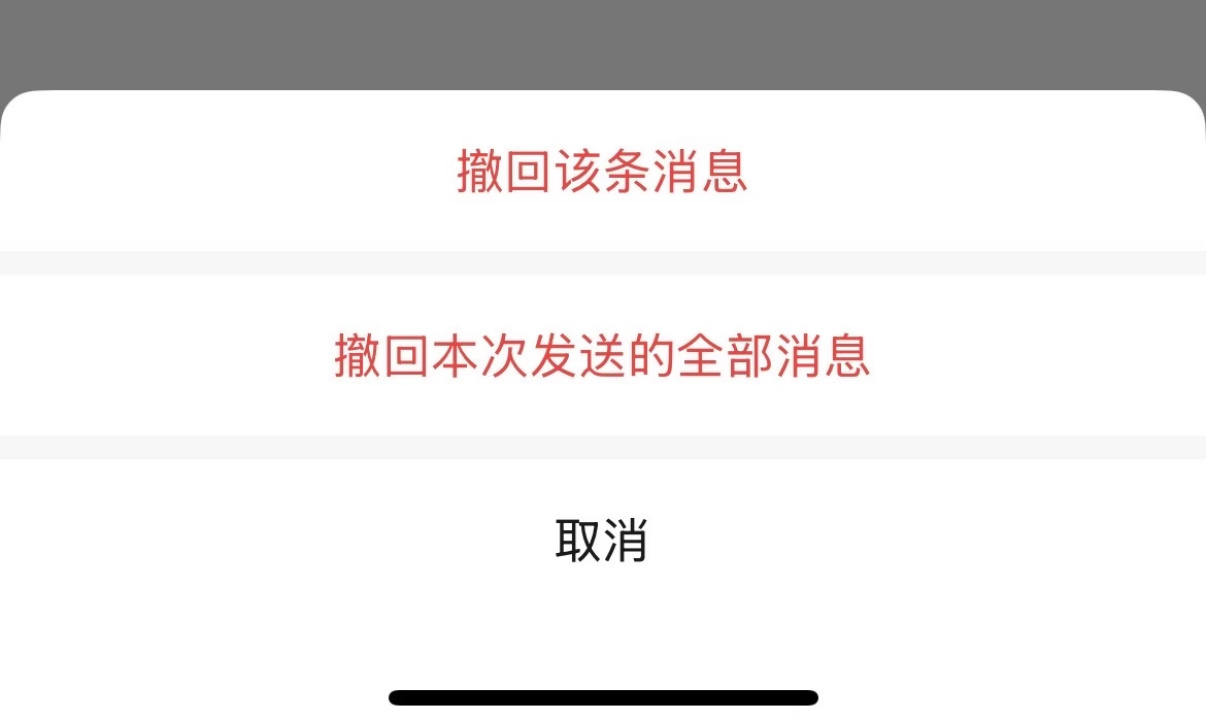 IT之家 10 月 9 日消息,据用户反馈,微信 iOS 版正灰度测试“撤回本次发送的全部消息”功能,在聊天框中长按 2 分钟内发送的消息点击“撤回”时,新增“撤回本次发送的全部消息”选项,支持用户一次性撤回本次连续发送的多条内容(文字 / 图片 / 语音等),无需逐条操作。