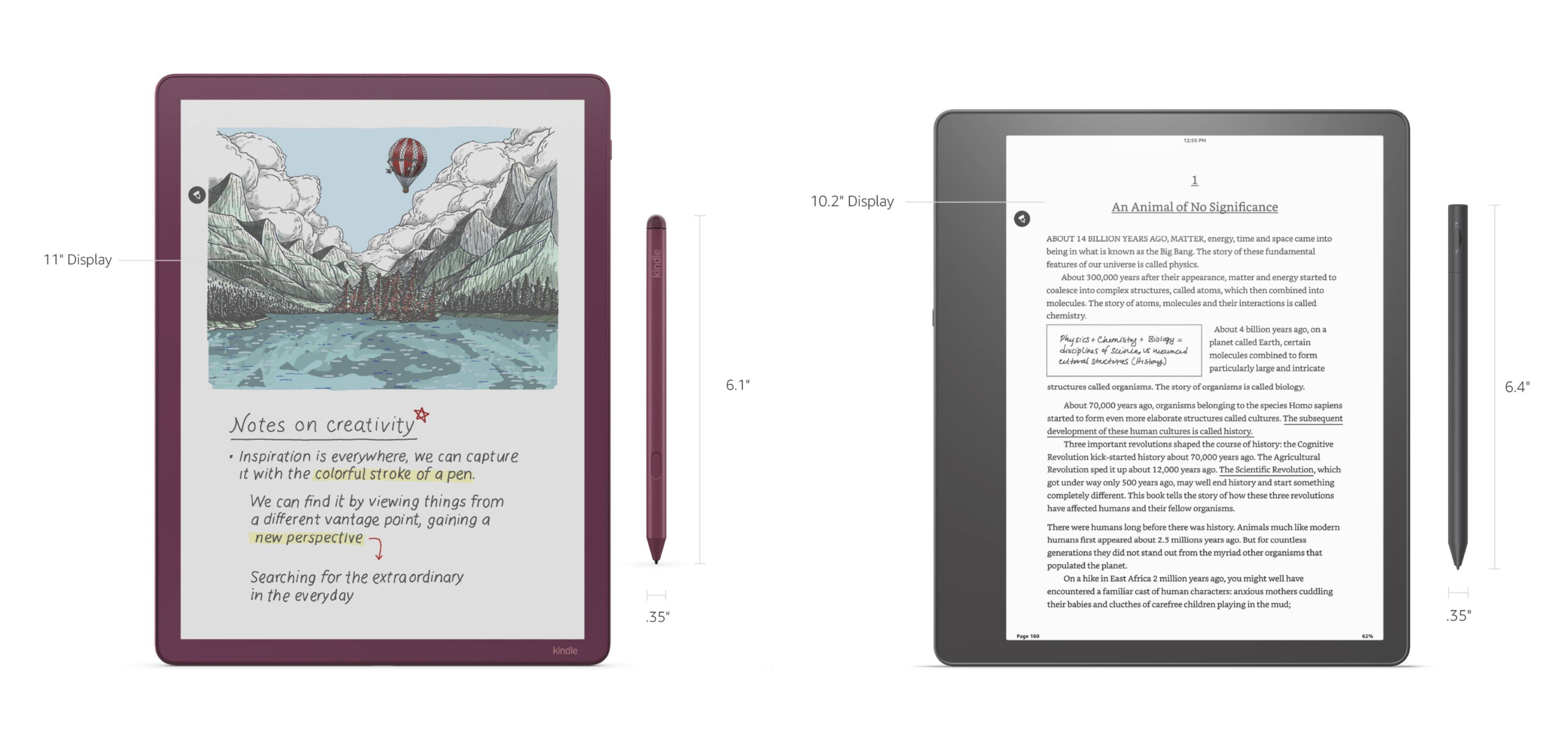 根据亚马逊的介绍,今年的「新一代 Kindle Scribe」分别包含 Kindle Scribe 标准版、Kindle Scribe 无背光版,以及支持彩色墨水屏显示的 Kindle Scribe Colorsoft: