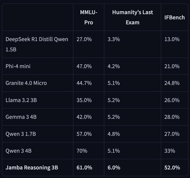 Jamba Reasoning 3B测评超阿里、谷歌等模型