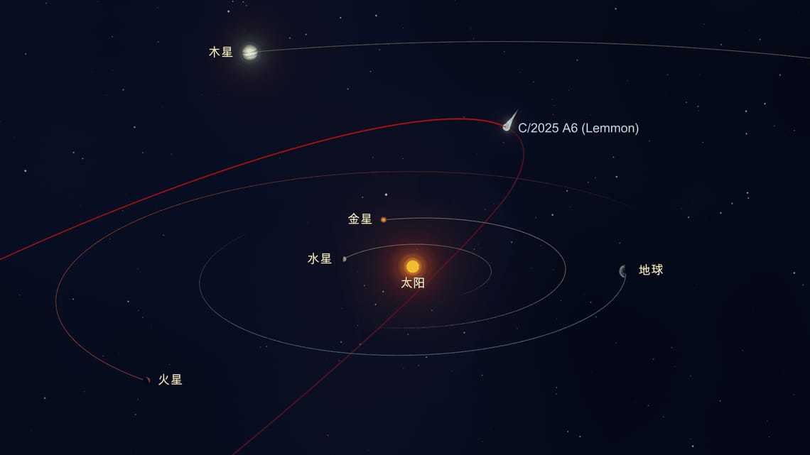 C/2025 A6(莱蒙)将于 10 月底以 0.6 天文单位的距离掠过地球,在北半球的傍晚天空中处于理想观测位置。