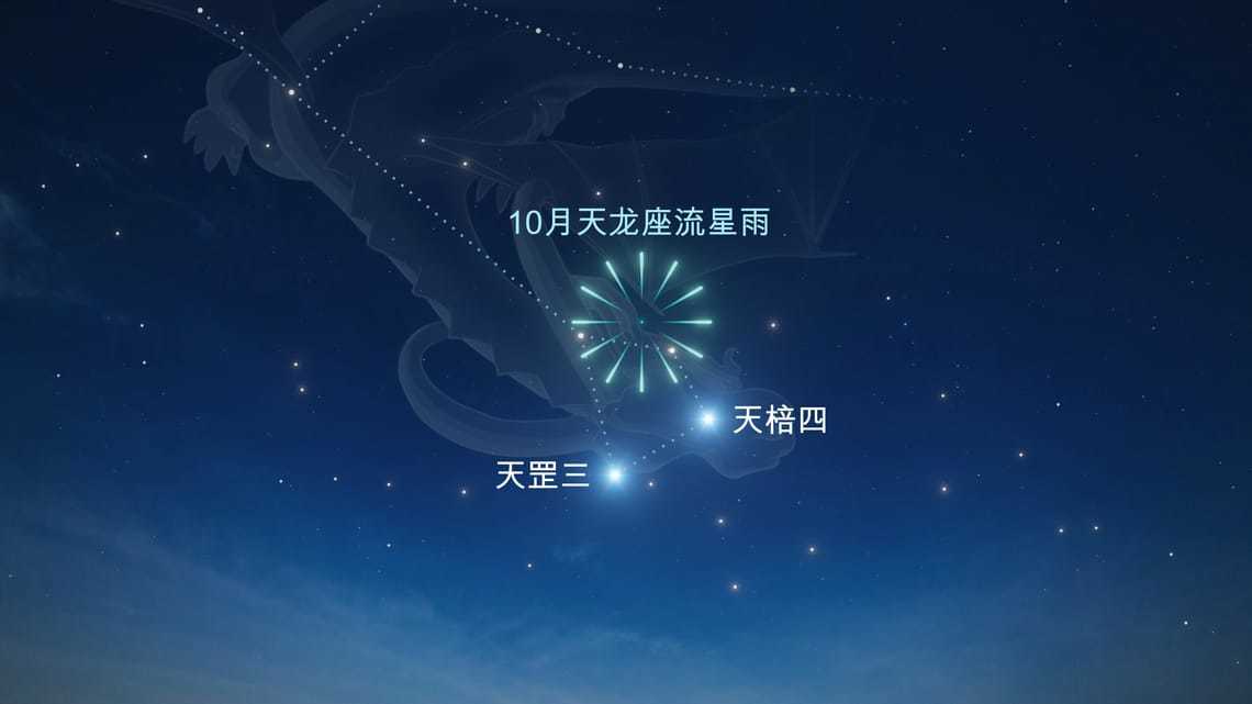 除彗星外,我们还将在 10 月看到天龙座流星雨及猎户座流星雨,其中天龙座流星雨的高峰期刚好是今晚(活动时间 10 月 6 日至 10 日),其北半球完美可见。