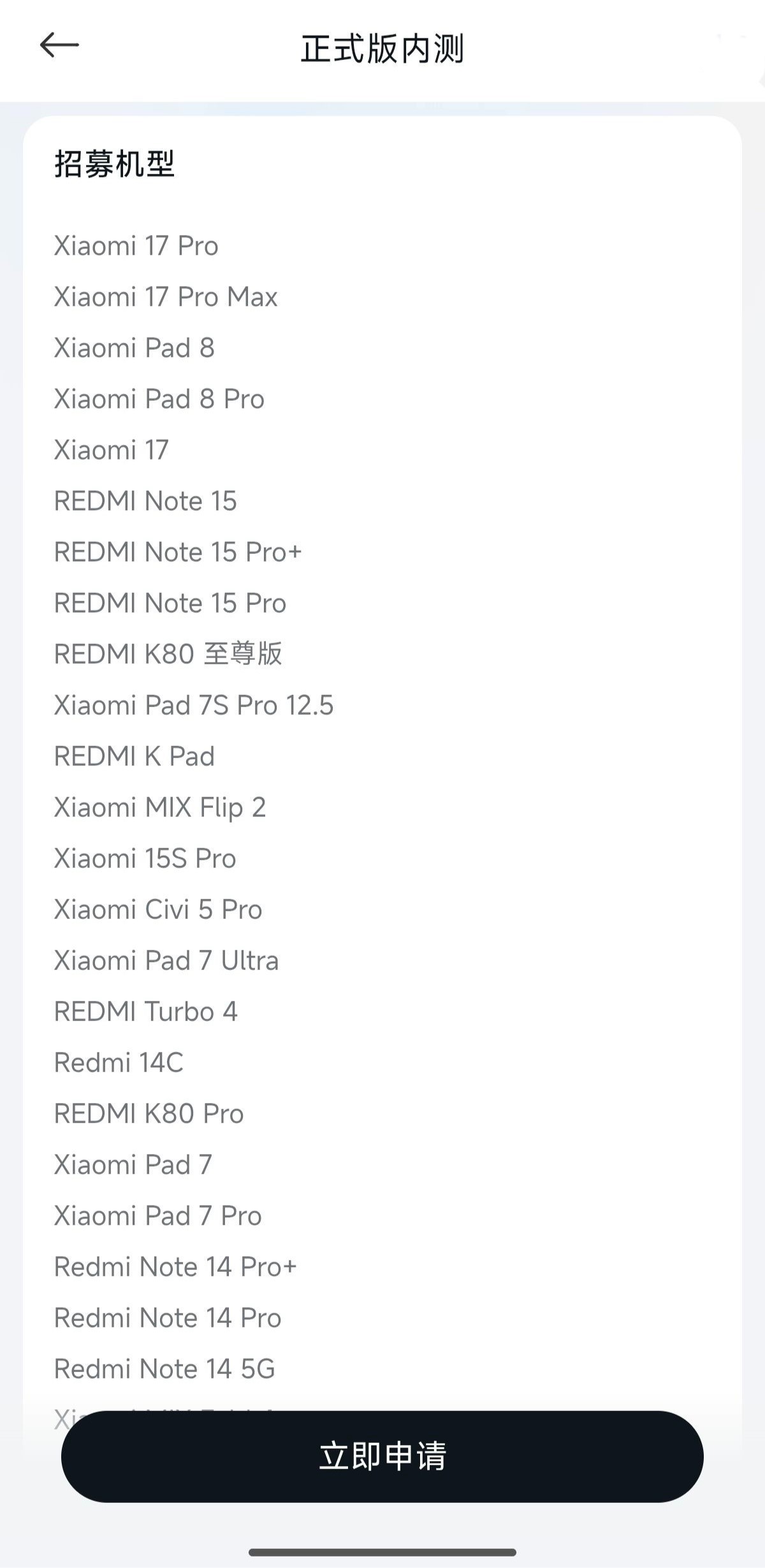 IT之家 10 月 9 日消息,小米 17 系列手机、小米 Pad 8 系列平板的澎湃 OS 3 正式版内测招募已开启,用户可前往小米社区报名申请。