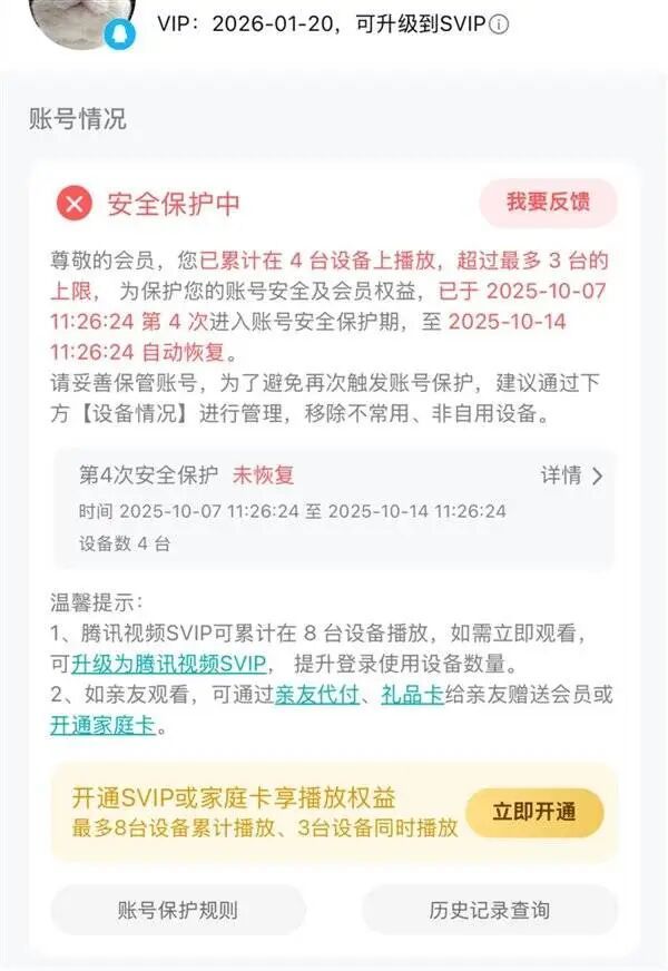 腾讯回应 VIP 设备超限「封号」争议:为防止黑灰产