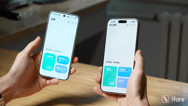 vivo 手机之间可直接拖拽至原子岛发送;而跨系统的分享(如 iOS)则可通过安装「互传」应用实现同样的效果。这种方式的意义不仅在速度或便捷,而在于它将分享重新变成了一种自然的动作:几个人同处一地,轻轻一摇,设备之间就建立起短暂却高效的连接。
