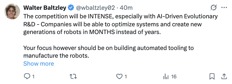 有人认为未来的竞争将非常激烈,“有了AI驱动的进化式研发,以前企业优化系统、开发新一代机器人,得花好几年时间,现在几个月就能搞定”。