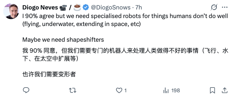 有人不完全同意这种观点,认为“还是需要一些专门的机器人来处理人类做得不好的事情”。