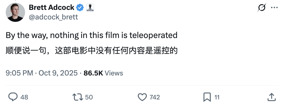 而Figure CEO Brett Adcock直接回应“遥控含量为0”: