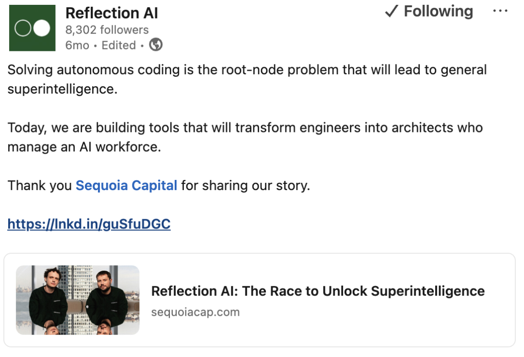 过去一年,Reflection AI为这个目标做好了充分准备。