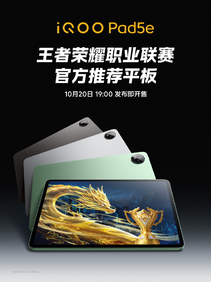 IT之家 10 月 10 日消息,iQOO 今日宣布,iQOO Pad5e 平板成为永劫无间手游和王者荣耀职业联赛双推荐平板,10 月 20 日 19:00 新品发布即开售。