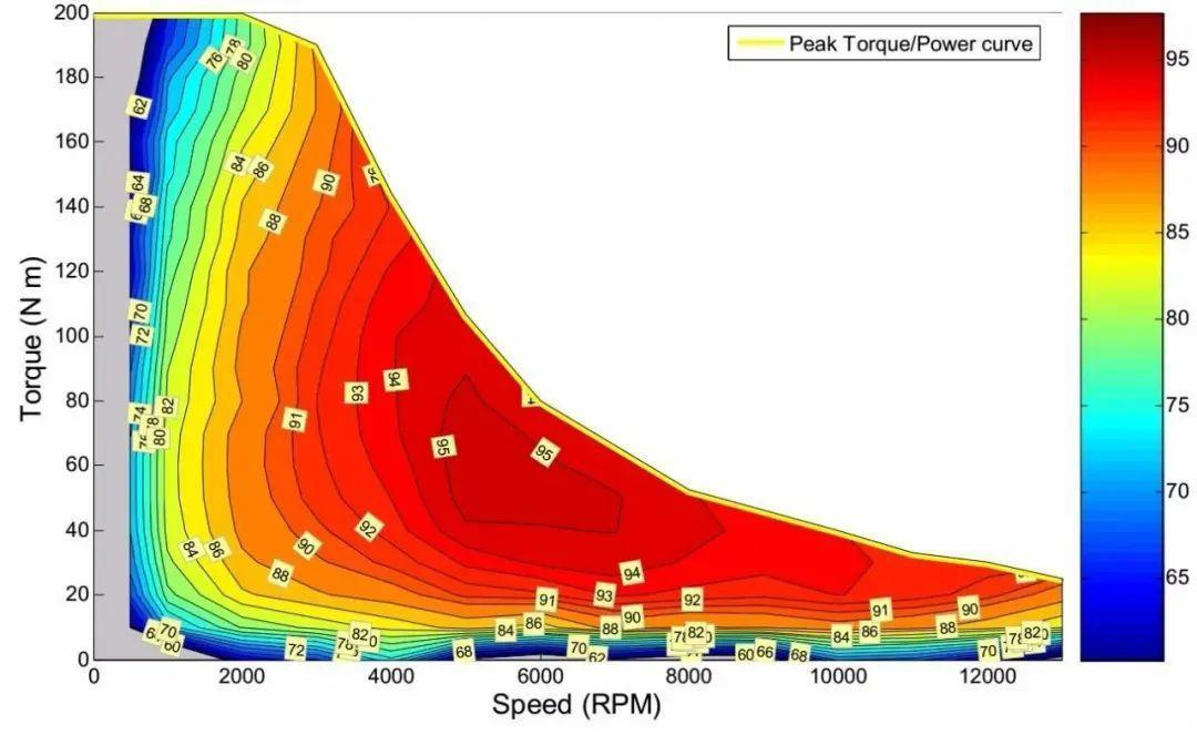 这里的原理比较复杂,咱们日后再说,一言以蔽之,电机和发动机一样,转速超过高效区间后也会大幅降低效率。