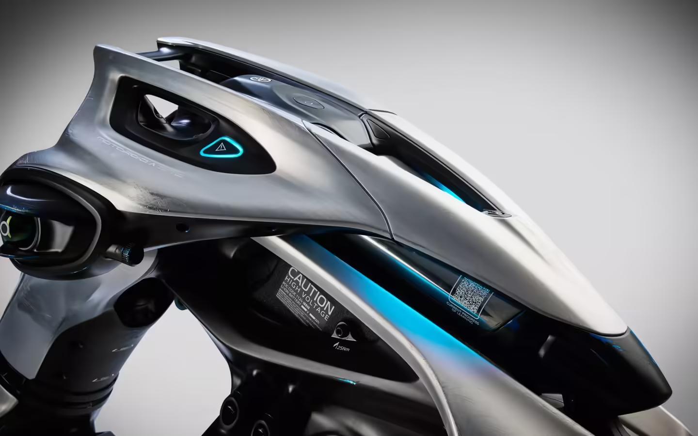 设计方面,Tricera 巧妙地融入了雅马哈摩托车的经典元素,例如其标志性的圆形头灯和两条横向日间行车灯,车头造型复杂,前轮上方还覆盖着小巧的挡泥板。