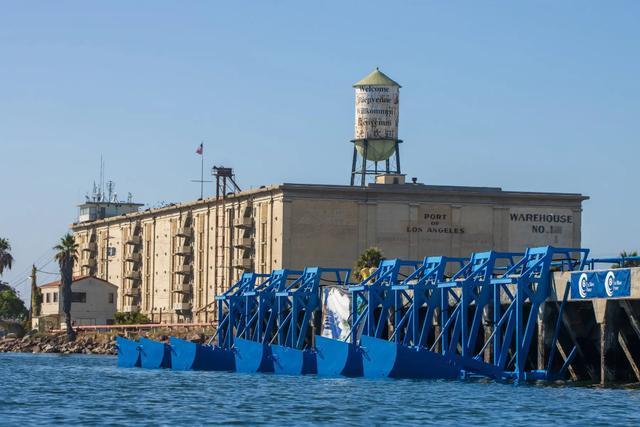 去年9月,Eco Wave Power在美国洛杉矶港启动了美国首个波浪发电项目,通过在浮标、码头等现有海洋结构上安装浮子,将波浪上下运动产生的压力流体输送至陆地转换装置发电。