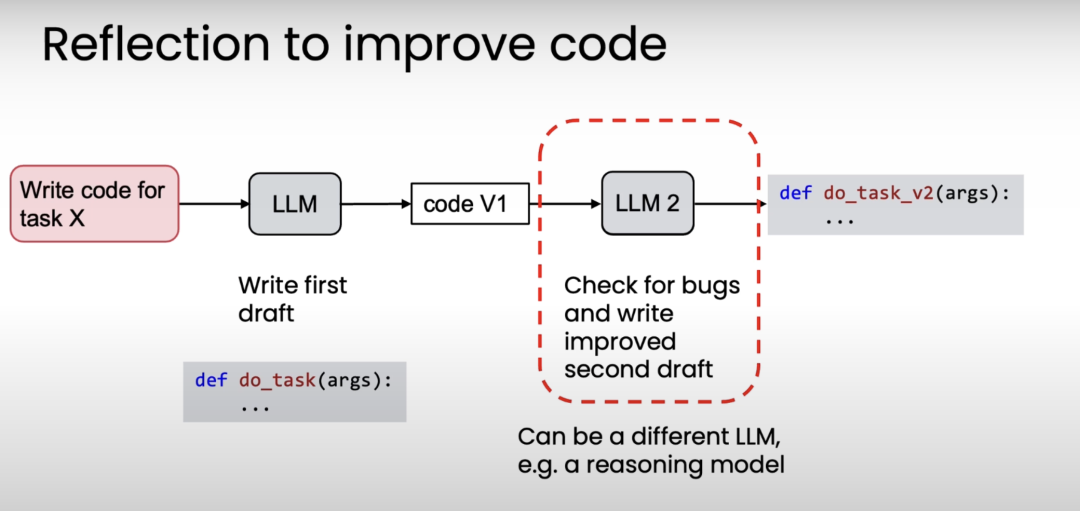 反思的核心思想非常简单,就是让大模型让检视自己的输出结果,并思考如何改进。