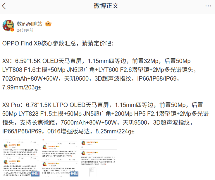 IT之家 10 月 12 日消息,OPPO Find X9 系列手机将于 10 月 16 日 19:00 发布,首批搭载天玑 9500 旗舰芯,博主 @数码闲聊站 今日将该系列新机的参数进行了汇总。