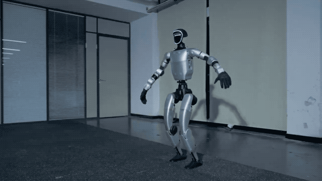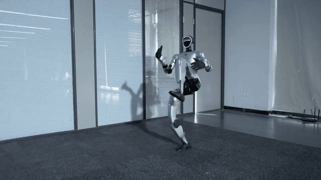 「我们把它定义为反重力模式,基本上机器人在任何干扰下都能自己恢复站立。算法升级后,理论上目前机器人可以完成各种舞蹈动作、武术动作。」