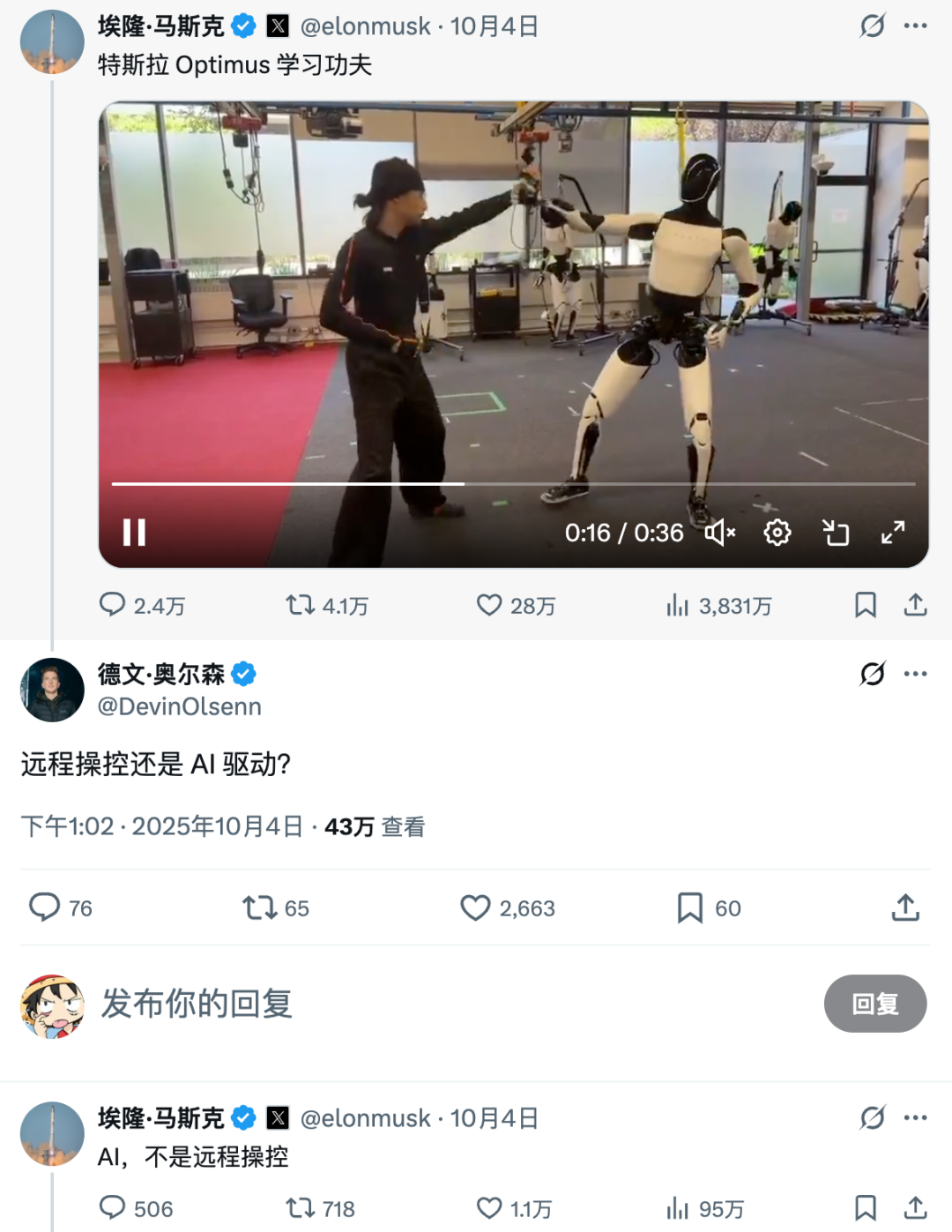 比如继跳完芭蕾舞之后,马斯克 10 月 4 日又在社交平台扔出一段特斯拉人形机器人「Optimus」学中国功夫的视频。