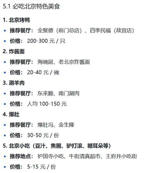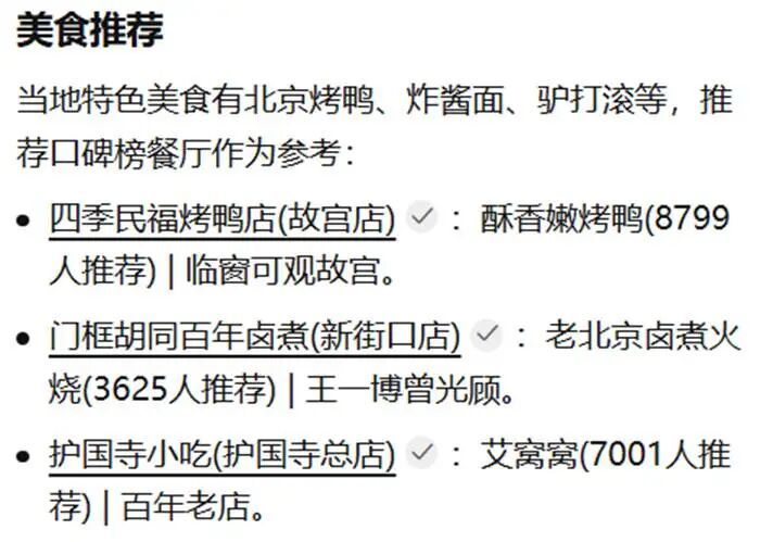 餐饮方面,携程AI推荐了三家北京特色美食: