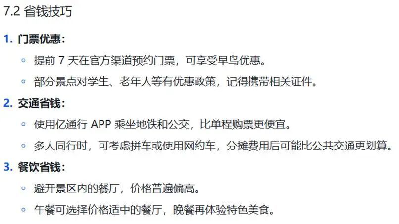 最后,规划的结尾还给出了一些技巧和建议,人性化程度直接拉满,豆包的用户体验确实值得信赖。