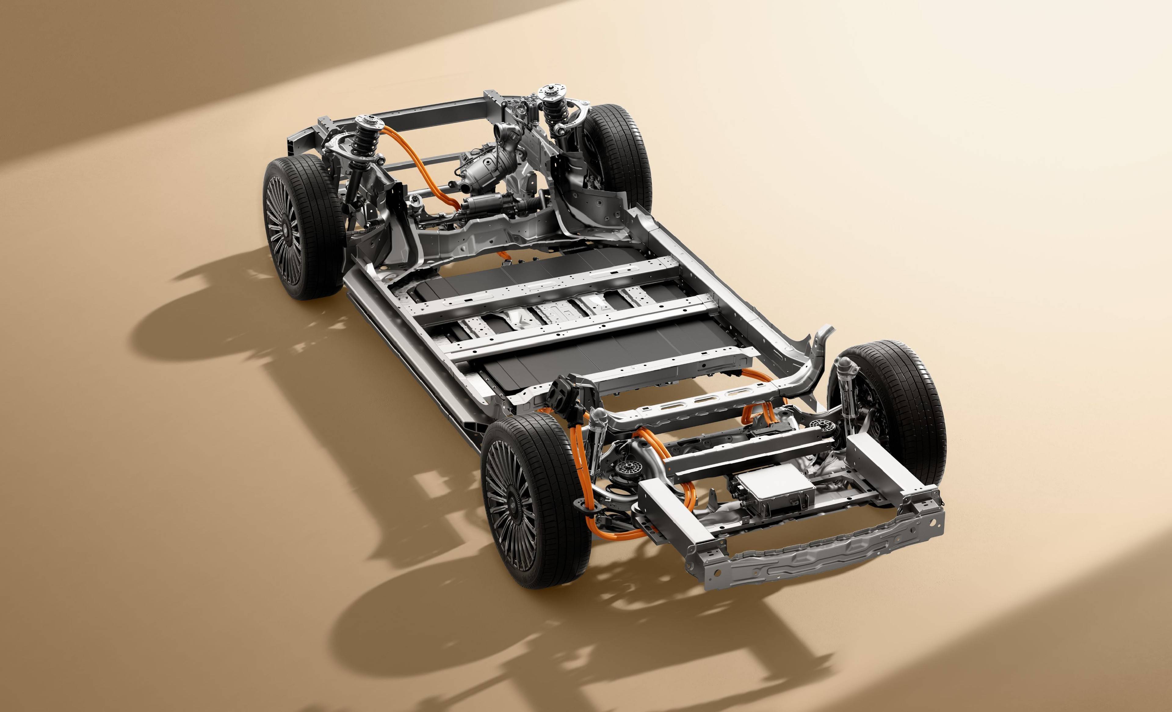 新车底盘部分采用前双叉臂、后五连杆独立悬架结构,四驱车型还提供 CDC 电控减振器。