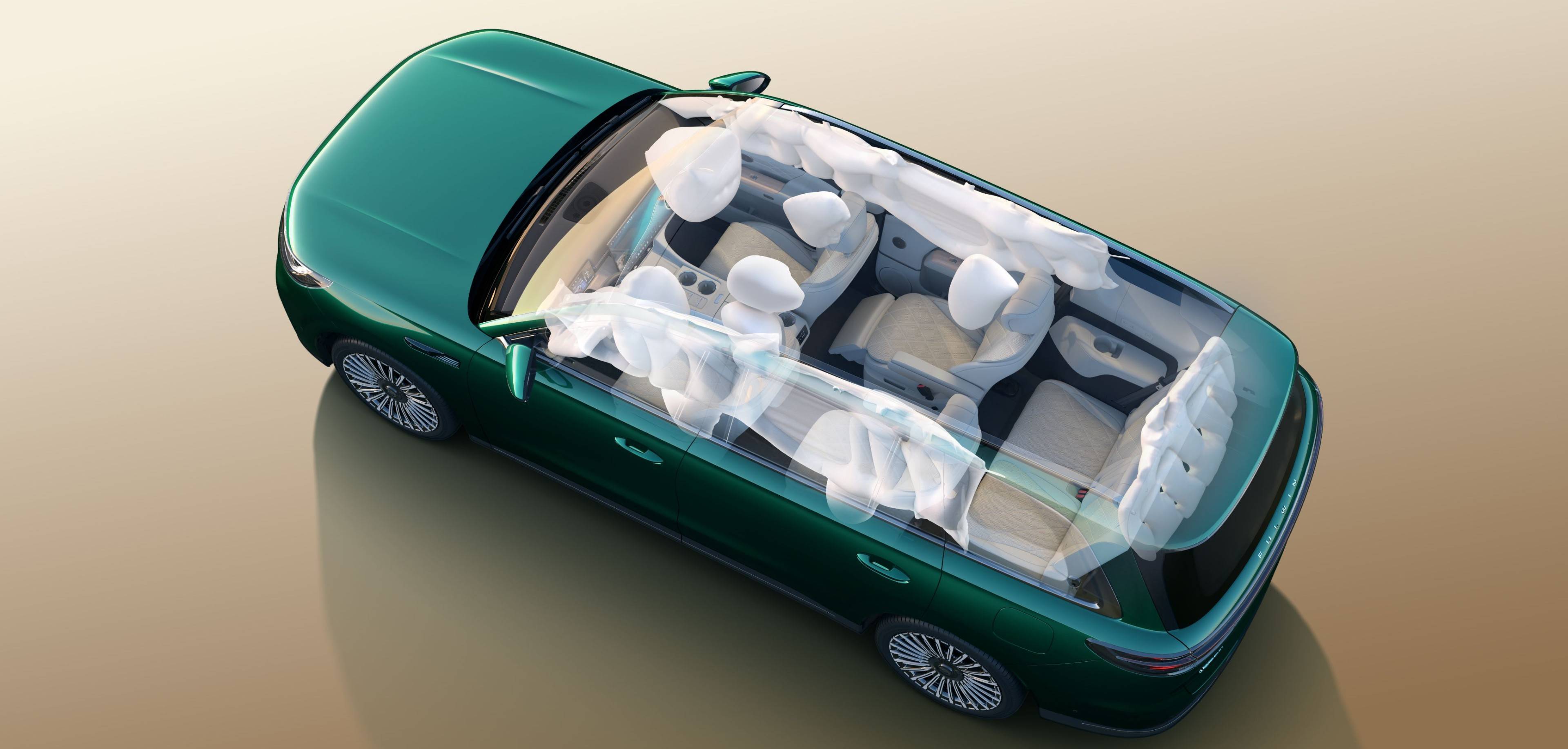 此外,风云 T11 全车共拥有 11 个安全气囊,与常规布局相比,增加了后风窗安全气囊、2.2米超长侧气帘、L型附加跃屏式气囊,以及双腔远端气囊等。