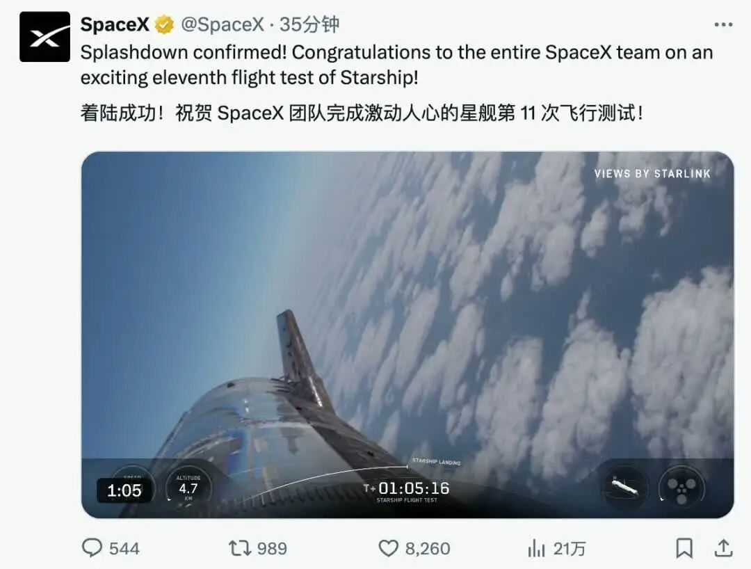 马斯克强调,星舰的迭代目标是实现「完全、快速可重复使用」,以支撑未来大规模星链部署和火星探索。