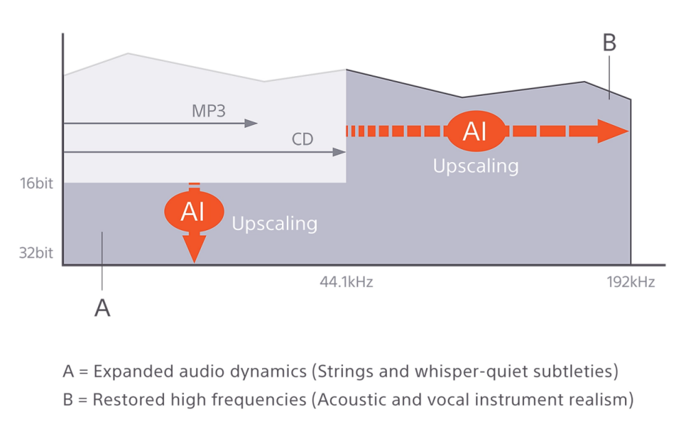 这项索尼独家的音质增强技术利用边缘人工智能(Edge-AI),能够实时升频压缩的数字音乐文件,甚至优化 CD 品质的无损音频,从而修复声音细节、拓宽动态范围,提供更丰富、完整的听觉体验。