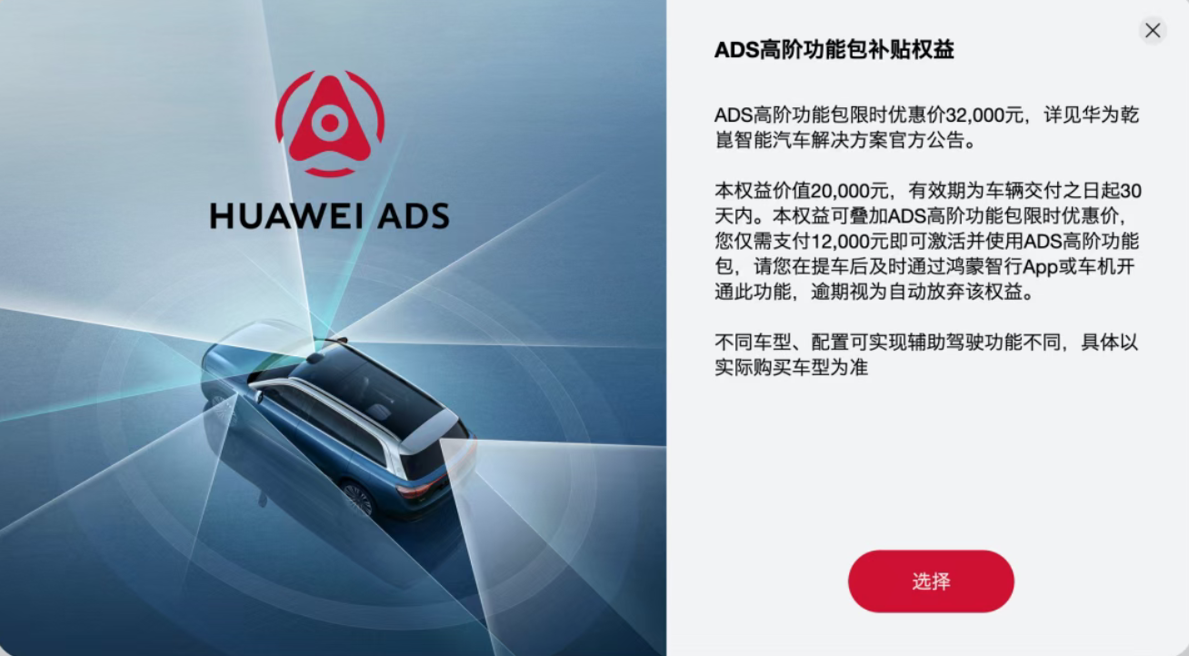 实际使用中的体验差距可能会更大,尚界 H5 15.98 万元版本并未提供满血版的华为乾崑智驾,只有视觉方案的 SE 版本,要体验到完整智驾,需要升级到 Max 版,加价 2 万,再选装 1.2 万的智驾包。