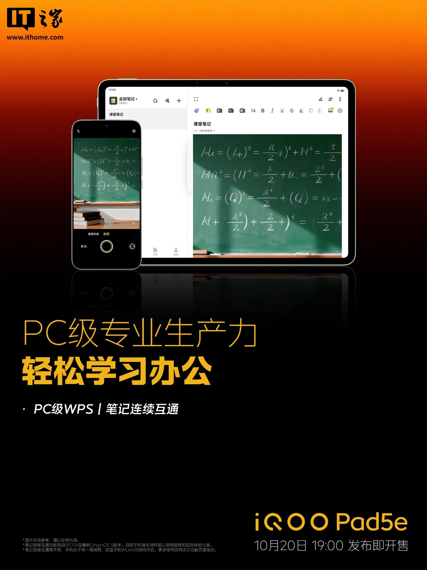 IT之家 10 月 15 日消息,iQOO 官方今天在微博透露,Pad 5e 平板将搭载 PC 级 WPS 办公软件,号称“PC 级专业生产力”。