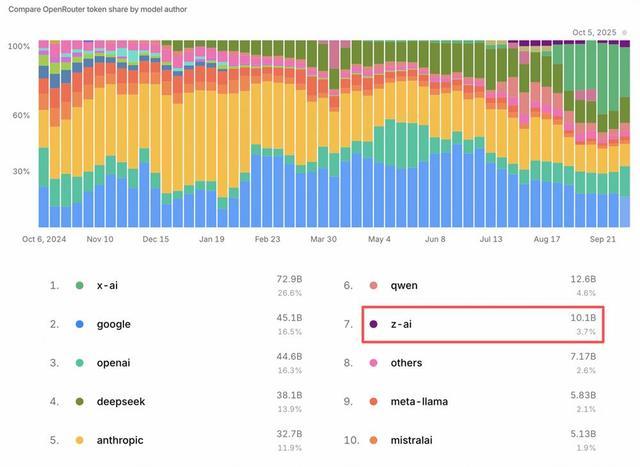 平台活跃度与付费情况直接反映了模型在实际开发与应用中的价值。GLM-4.6在OpenRouter上的持续走高,说明它不仅受到个人开发者的青睐,也正赢得越来越多企业级用户的信任与部署。