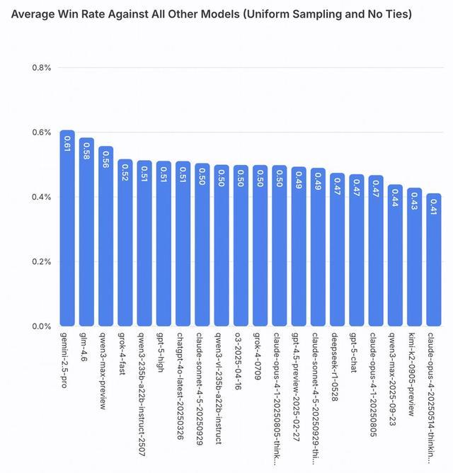 而在所有模型的胜率榜单中,它位列全球第二,展现出在多领域任务上的稳定性能。
